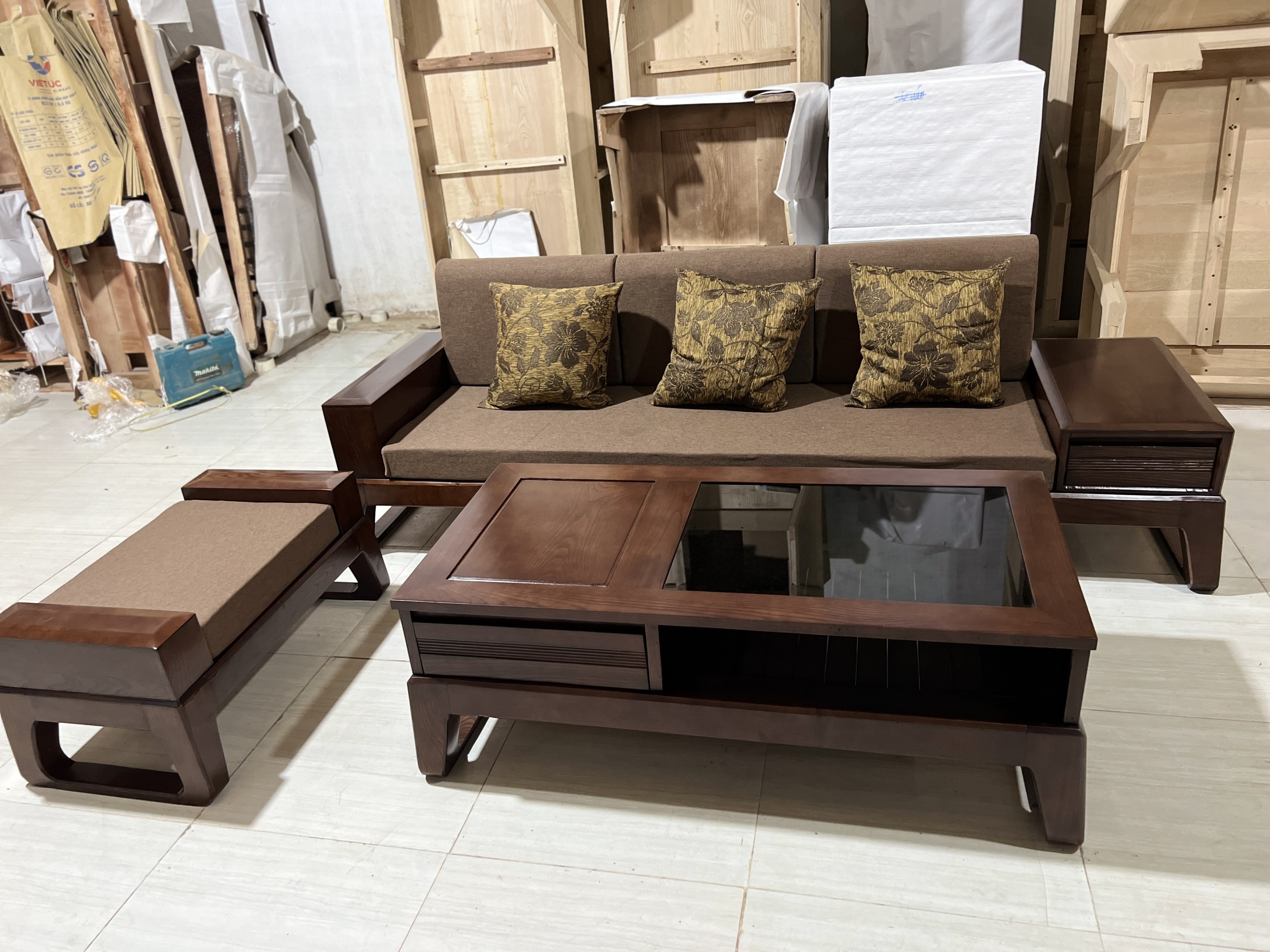 1.1 Bộ ghế sofa nhỏ gọn giá rẻ, sang trọng bằng gỗ sồi