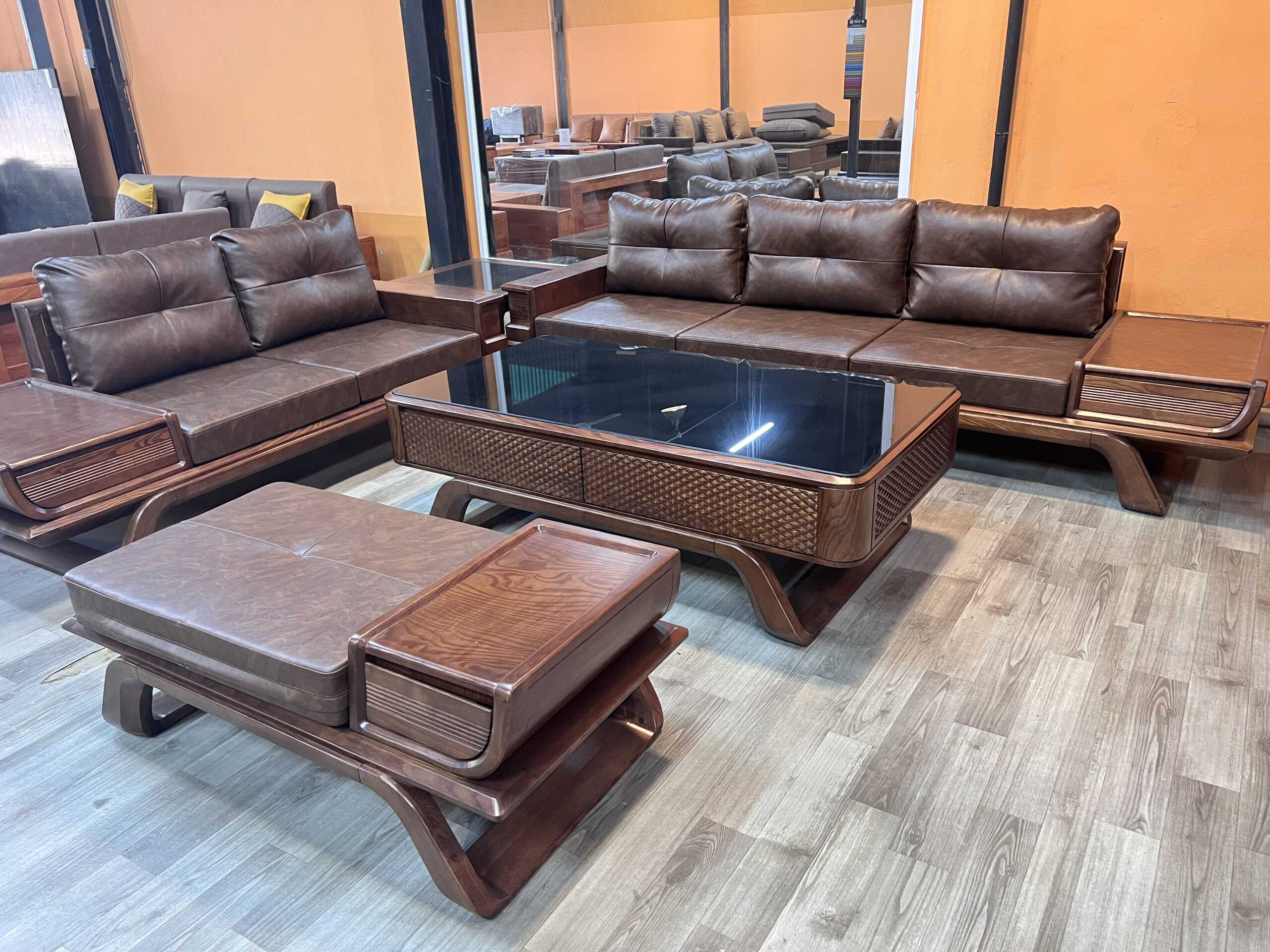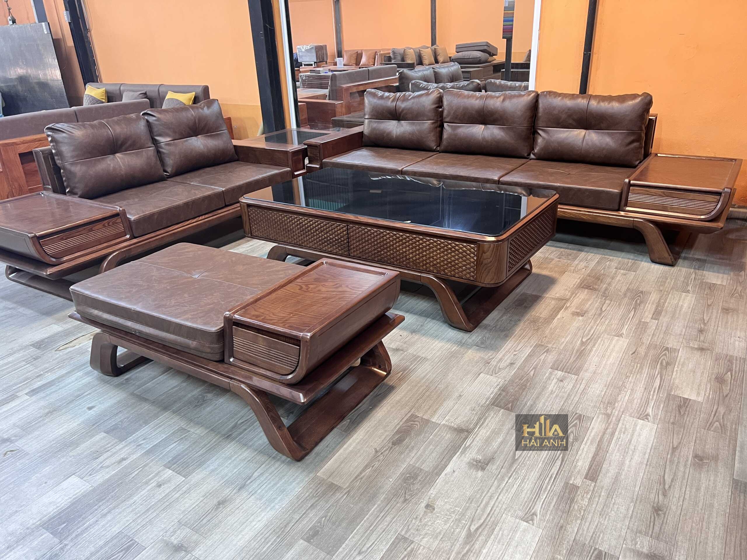 2 ghế dài, 1 bàn, 1 đôn, 1 mặt kính, 1 bộ nệm tự dày 12cm lõi bông ép |