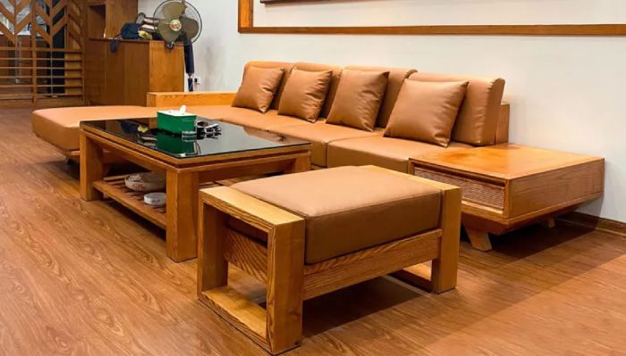 2.5 Sofa gỗ chữ L hiện đại với chất liệu gỗ tần bì