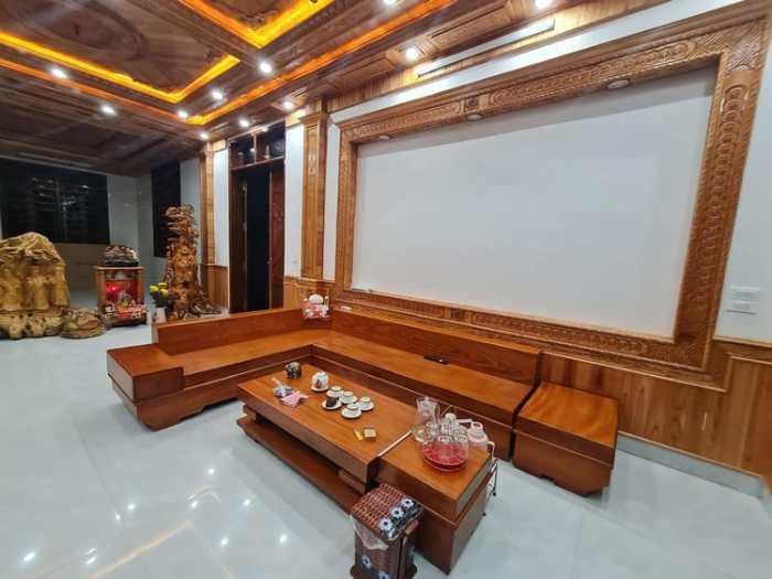 Gỗ gõ đỏ là một trong các dòng gỗ quý hiếm có màu sắc và vân thớ đẹp, gỗ có hương thơm và độ bền cao. Mẫu sofa gỗ chữ L hiện đại gỗ gõ đỏ là lựa chọn hàng đầu cho gia chủ thích không gian sang trọng và đẳng cấp.