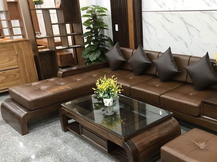 Sofa gỗ óc chó chữ L mang phong cách hiện đại, kích thước vừa phải và màu sắc cuốn hút. Đây là một trong những mẫu nội thất cao cấp bán chạy trên thị trường. Lựa chọn bộ sofa để tạo nên điểm thu hút và trang bị tiện ích thoải mái cho không gian phòng khách gia đình mình.