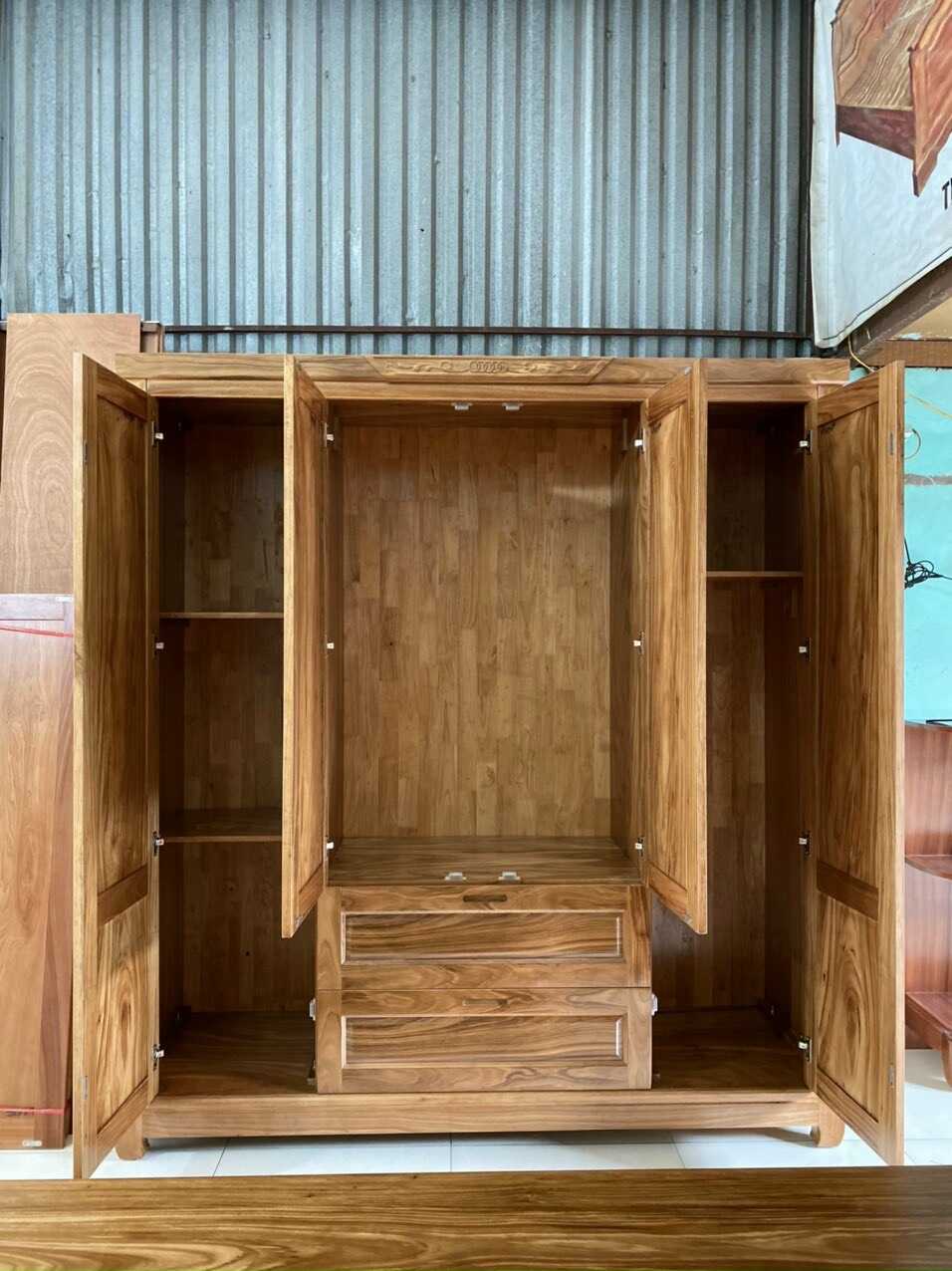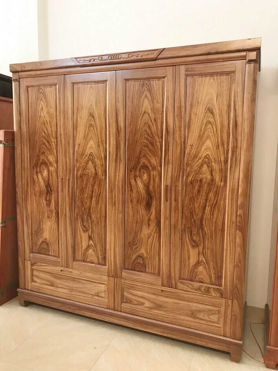 Tủ quần áo 4 cánh gỗ hương xám được sản xuất trực tiếp và giao bán tại xưởng đồ gỗ tại Thạch Thất.