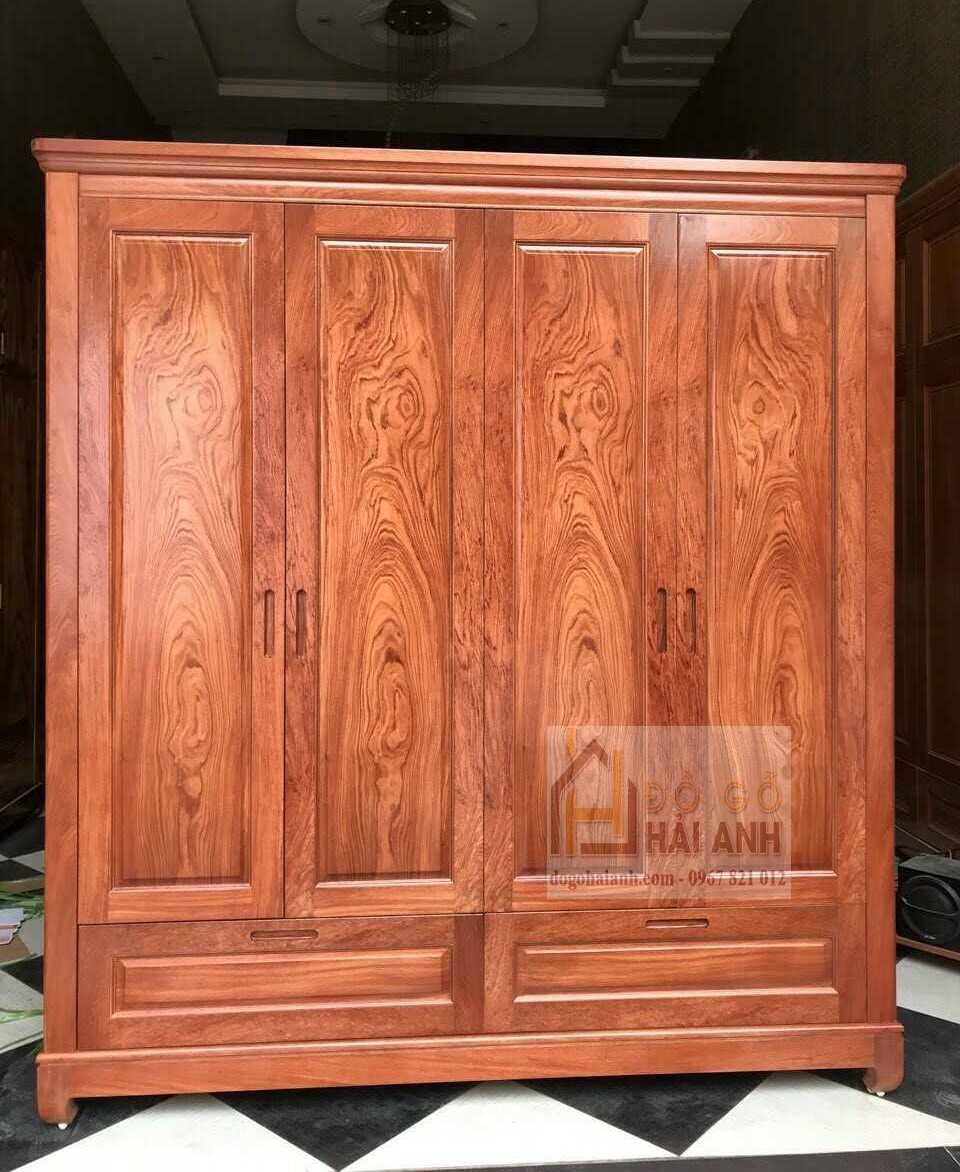 » Tủ Quần Áo hương đá 4 cánh được sản xuất từ chất liệu gỗ hương đá vener tự nhiên đã qua xử lý tẩm sấy công nghiệp chống mối mọt, cong vênh, đem lại độ bền cực cao (tấm hậu ván 9mm đã qua xử lý công nghiệp).